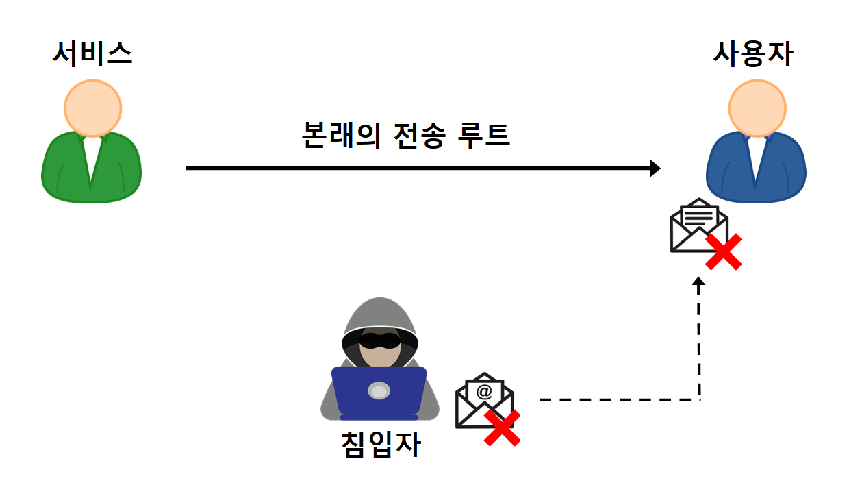 이러한 차단 공격은 그림에도 쉽게 알 수 있듯, 사용자에게 정상적인 서비스가 도달하지 못하게 된다. 즉, 차단은 가용성 보장을 위협하는 공격인 것이다. 이 공격의 결과로 사용자는 임시적으로, 혹은 영구적으로 서비스에 접근할 수 없을 것이다.
