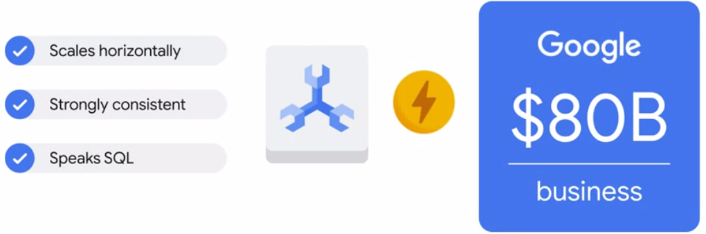 클라우드 스패너는 완전하게 관리되는 관계형 데이터베이스 서비스로, 수평적으로 확장되고, 일관성이 강력하며, SQL을 구사한다. 구글의 자체 미션-크리티컬 애플리케이션과 서비스에 의해 테스트된 스패너는 구글의 800억 달러 비즈니스에 힘을 실어주는 서비스다. 클라우드 스패너는 특히 다음이 필요한 애플리케이션에 적합하다. 조인 및 보조 인덱스가 포함된 SQL 관계형 데이터베이스 관리 시스템이 내장된 고가용성의 강력한 글로벌 일관성 및 초당 높은 입출력 작업을 하는 것에 말이다. 초당 수만 번 이상의 읽기와 쓰기에 대해 말하는 것이다.