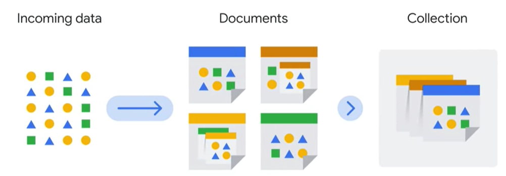 파이어스토어를 사용하면, 데이터가 문서에 저장된 다음, 컬렉션으로 구성된다. 그 문서에는 하위 컬렉션 외에 복잡한 중첩된 객체가 포함될 수 있다. 각 문서에는 키-값 쌍의 셋이 포함되어 있다. 예를 들어, 사용자를 나타내는 문서는 그에 연관된 값과 함께 이름과 성에 대한 키가 있다. 그런 다음 파이어스토어의 NoSQL 쿼리는 개별의 특정 문서를 검색하거나 쿼리 매개변수와 일치하는 컬렉션 내의 모든 문서를 검색할 수도 있다. 쿼리에는 여러 개의 체인 방식 필터가 포함될 수 있으며, 필터링과 정렬 옵션을 결합할 수 있다. 또한, 기본적으로 그것들은 인덱싱되므로, 쿼리 성능은 데이터셋이 아닌 결과 셋의 크기에 비례한다. 파이어스토어는 데이터 동기화를 사용하여 연결된 장치의 데이터를 업데이트한다. 그러나 그것은 또한 간단한, 일회성의 패치 쿼리를 효율적으로 만들도록 설계되었다.