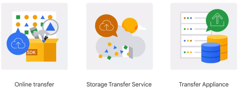 어떤 스토리지 클래스를 선택하건, 클라우드 스토리지로 데이터를 가져오는 방법에는 여러 가지가 있다. 많은 고객이 클라우드 SDK의 클라우드 스토리지 명령인 Cloud storage를 사용하여 자신만의 온라인 전송을 수행한다. 구글 크롬 웹 브라우저를 통해 엑세스할 경우, 클라우드 콘솔에서 Dragon Drop 옵션을 사용함으로써 데이터를 이동시킬 수도 있지만, 만일 테라 바이트, 심지어는 페타 바이트의 데이터를 업로드해야 한다면 어떻게 해야 할까? 스토리지 전송 서비스를 사용하면 대용량의 온라인 데이터를 클라우드 스토리지로 빠르고 비용 효율적으로 가져올 수 있다. 스토리지 전송 서비스를 사용하면, 다른 클라우드 스토리지 리전의 다른 클라우드 공급업체 또는 HTTPS 엔드포인트에서 클라우드 스토리지로 배치 전송을 예약하고 관리할 수 있다. 그런 다음 구글 클라우드에서 임대하는 랙(rack) 가능한 대용량 스토리지 서버인 전송 장치가 있다. 우리는 그것을 사용하여 네트워크에 연결하여 데이터를 로드한 다음, 데이터가 클라우드 스토리지에 업로드되는 업로드 시설로 옮긴다. 이때 단일 어플라이언스에서 최대 패타 바이트의 데이터를 전송할 수 있다. 클라우드 스토리지는 다른 구글 클라우드 제품, 서비스와 긴밀하게 통합되어 있으며, 이는 데이터를 서비스로 이동할 수 있는 수 많은 방법이 존재함을 의미한다. 예를 들어, 빅쿼리와 클라우드 SQL 모두로부터 테이블을 가져오거나 내보낼 수 있다. 또한, 앱 엔진 로그, 백업용 파일, 이미지와 같이 앱 엔진 애플리케이션에서 사용하는 객체를 저장할 수도 있다. 클라우드 스토리지는 또한 인스턴스 시작 스크립트, 컴퓨트 엔진 이미지, 컴퓨트 엔진 애플리케이션에 의해 사용되는 객체를 저장할 수도 있다.