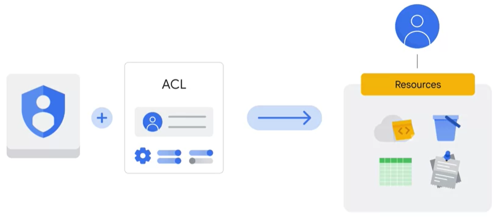 조직은 IAM 역할과 필요한 경우에는 엑세스 제어 목록(ACL)을 사용하여 각 사용자가 그들의 작업을 수행하는 데 있어 필요한 리소스에 대한 최소한의 엑세스와 권한을 갖는 보안 모범 사례를 준수할 수 있다. 객체와 버킷에 대한 사용자 엑세스를 제어하는 몇 가지 옵션이 존재한다. 대부분의 목적에서, IAM만 있으면 충분하다. 역할은 프로젝트 → 버킷 → 객체로 상속된다. 만약 더욱 세밀한 제어가 필요하다면, ACL를 만들면 된다. 각 ACL는 2가지 정보로 구성된다. 첫 번째는 범위로, 누가 엑세스하고, 누가 작업을 수행하는지 정의한다. 이것은 특정 사용자나 사용자 그룹일 수 있다. 두 번째는 권한으로, 읽기나 쓰기와 같은 수행할 수 있는 작업의 성격에 대해 정의한다.