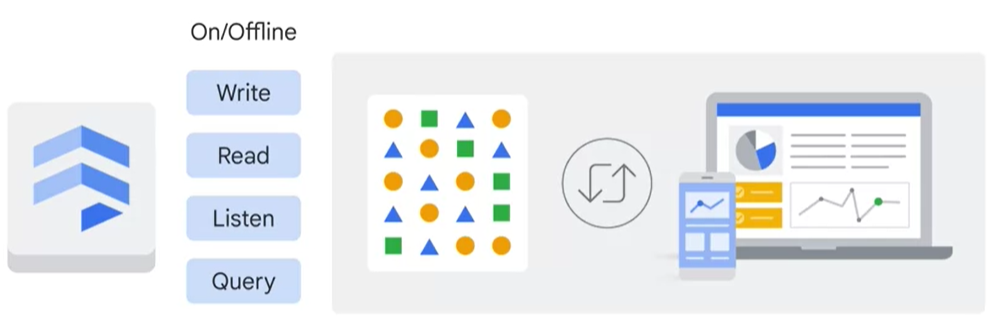 앱이 활발하게 사용하는 데이터를 캐시하기 때문에 설령 기기가 오프라인이더라도 앱이 데이터를 쓰고, 읽고, 듣고, 질의할 수 있다. 그러다 기기가 다시 온라인 상태가 되면, 파이어스토어는 모든 로컬 변경사항을 파이어스토어로 동기화한다. 파이어스토어는 자동적인 멀티 리전 데이터 복제, 강력한 일관성 보장, 극소의 배치 작업, 그리고 실제 트랜잭션 지원과 같은 구글 클라우드의 강력한 인프라를 활용한다. 프라이싱 측면에서 볼 때, 파이어스토어에서 수행하는 각 문서에 대해 읽기, 쓰기, 그리고 삭제에 대해 비용이 부과된다. 쿼리는 쿼리가 데이터를 반환하는지의 여부에 관계 없이, 쿼리당 하나의 '문서 읽기' 속도로 가격이 부과된다. 또한, 데이터에 엑세스하는 데 사용되는 특정 유형의 네트워크 대역폭에 대해 데이터 소비 용량이 부과된다. 유입(전송)은 현재 무료고, 많은 경우에서 유출(전송)도 무료다. 자세한 사항은 파이어스토어의 프라이싱 페이지를 참조하거나, 구글 빌링 계산기를 사용하여 특정 사용 사례의 가격을 추정할 수 있다.
