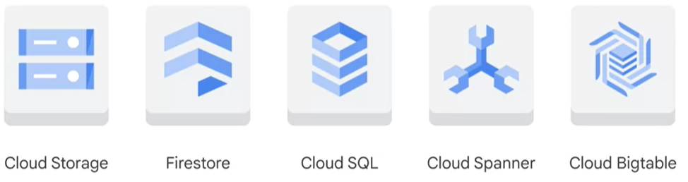 모든 애플리케이션은 스트리밍될 미디어와 같은 데이터 또는 심지어 장치에 있는 센서 데이터까지도 저장할 필요가 있다. 그리고 애플리케이션과 워크로드에 따라 스토리지 데이터베이스 솔루션은 달라진다. 구글 클라우드는 정형, 비정형, 트랜잭션형, 그리고 관계형 데이터에 대한 스토리지 옵션을 갖고 있다. 이번 섹션에서 우리는 구글 클라우드의 5가지 제품인 클라우드 스토리지, 클라우드 SQL, 클라우드 스패너, 파이어스토어, 그리고 클라우드 빅테이블에 대해 살펴보게 된다. 어떤 애플리케이션이냐에 따라 이러한 서비스 중 하나 또는 여러 개를 사용하여 작업을 수행할 수 있을 것이다.