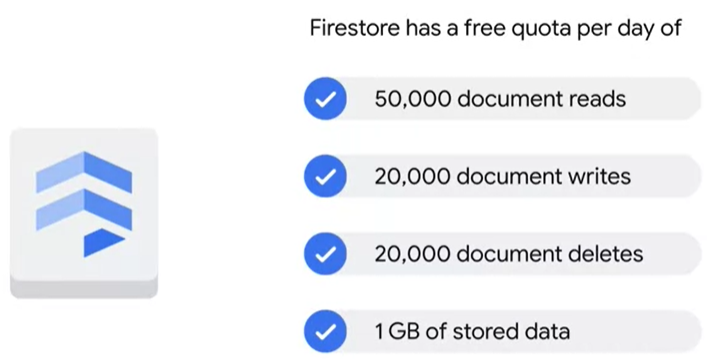 파이어스토어는 미국 리전 사이에서 월 10GiB의 네트워크 무료 유출(전송) 외에도, 5만 건의 문서 읽기, 2만 건의 문서 쓰기, 1GB의 저장 데이터를 하루마다 무료로 할당한다. 요금은 일일 무료 할당량을 초과한 경우에만 부과가 시작된다. 이를 통해 우리는 아주 적은 돈으로, 심지어는 무료로 파이어스토어를 사용할 수 있다.