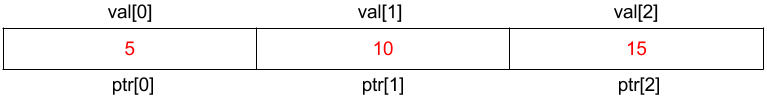 Pointer ptr이 인수로 함수에 전송되면, 배열 val도 유사한 방식으로 접근할 수 있다.