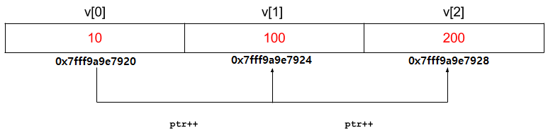 // Assign the address of v[0] to ptr