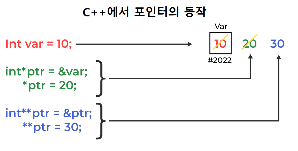 C++에서 포인트를 쓰는 방법은 다음과 같다.