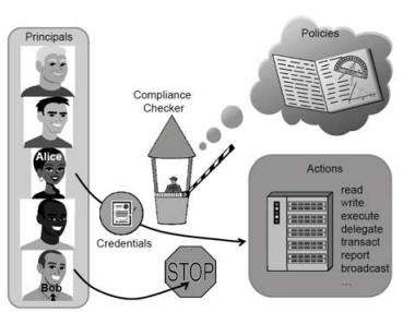트러스트 매니지먼트 시스템은 보안 정책을 정확한 언어로 지정하기 위한 공식 프레임워크다. 이는 지정된 정책이 시행되도록 보장하는 메커니즘과 함께 논리 또는 프로그래밍 언어라 할 수 있다. 트러스트 매니지먼트 시스템은 다음과 같은 두 가지 주요 구성 요소로 구성된다.