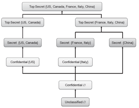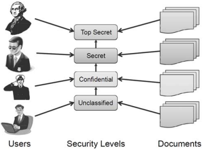 일반적으로 보안 모델은 조직 구성원이 가질 수 있는 액세스 또는 수정 권한의 계층을 정의하므로, 조직의 주체는 계층 내 이러한 권한의 위치에 따라 특정 권한을 쉽게 부여받을 수 있다. 예시에는 "기밀로 분류되지 않음", "기밀", "비밀" 및 "일급 비밀"과 같은 개념을 기반으로 문서에 대한 액세스 권한의 군사 분류가 포함된다.