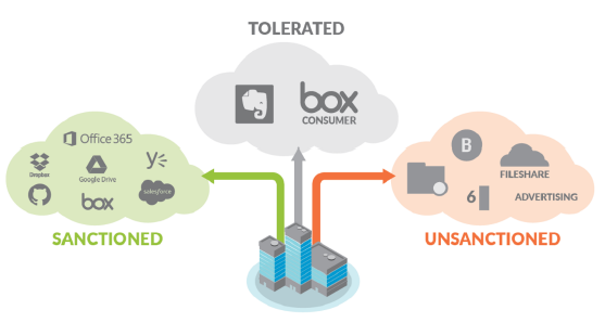 Sanctioned SaaS 애플리케이션은 비즈니스 이점을 제공하고 구축 속도가 빠르며, 최소한의 비용이 필요하며 무한 확장성을 갖는다. Tolerated SaaS 애플리케이션은 합법적인 비즈니스 요구 사항을 충족하지만, 위험을 줄이기 위해 특정 사용 제한이 필요할 수 있다. Unsanctioned SaaS 애플리케이션은 분명히 비즈니스 이점을 제공하지 않거나 애플리케이션의 보안 위험이 비즈니스 이점보다 크다. 예를 들어, 승인되지 않은 SaaS 애플리케이션은 규정 준수 의무를 위반하거나 기업의 지적 재산이나 기타 중요한 데이터가 손실될 수 있는 허용되지 않는 위험을 발생시키거나, 악성 프로그램 배포를 가능하게 할 수 있다