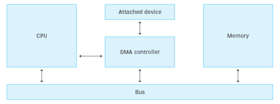 DMA는 DMA 제어기를 두어 메인 메모리와 입출력 장치를 다이렉트로 연결한다. 그래서 CPU의 개입을 없게 만드는 것이다. CPU는 데이터 전송에 관여하지 않게 되므로, 전반적인 컴퓨터 작동 속도는 향상될 것이다.