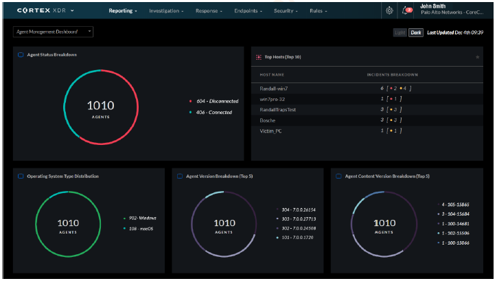 엔드포인트 에이전트는 다양한 드라이버와 서비스로 구성되어 있지만, 중단 없는 사용자 환경을 보장하기 위해 최소한의 메모리와 CPU 사용량(512MB의 RAM 및 200MB의 디스크 공간)만 사용하면 된다. 엔드포인트에 배포된 후 관리자는 Cortex XDR 콘솔을 통해 사용자 환경의 모든 Cortex XDR 에이전트를 완벽하게 제어할 수 있다.