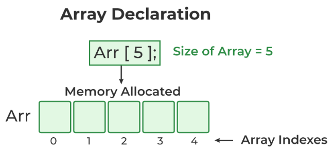 C++에서는 데이터 유형을 먼저 지정한 다음 크기가 있는 배열의 이름을 지정하기만 하면 배열을 선언할 수 있다.