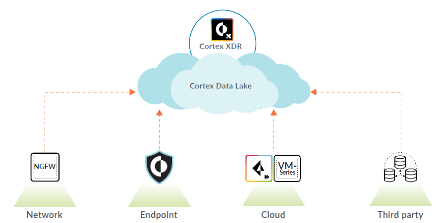 모든 데이터를 통합하여 보안 사일로를 파괴한다. Cortex XDR은 엔드포인트, 네트워크 및 클라우드 데이터를 자동으로 꿰매어 공격을 정확하게 탐지하고 조사를 간소화한다. 팔로알토 네트웍스 제품뿐만 아니라, 타사 로그 및 경고에서 데이터를 수집하여 모든 네트워크 세그먼트에 걸쳐 지능적인 결정의 범위를 넓힐 수도 있다. 타사 경고는 엔드포인트 데이터와 동적으로 통합되어 근본 원인을 밝히고 분석가의 시간을 절약한다. Cortex XDR은 타사 방화벽에서 수집한 로그를 행동 분석을 통해 검사하여 중요한 위협을 찾고 가시성 사각지대를 제거할 수 있다.