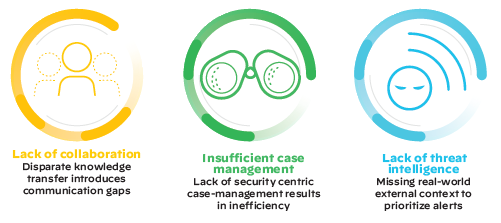 ② 사일로화된 워크플로우로 인해 사고 대응 및 위협 인텔리전스 툴, 팀 및 프로세스 간의 커뮤니케이션 및 통합이 제대로 이루어지지 않는다.