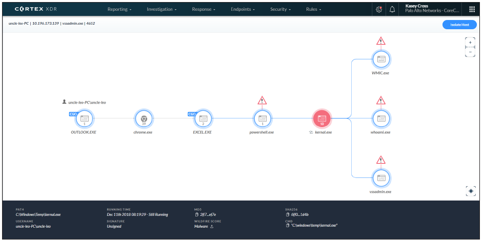 Cortex XDR은 모든 위협에 대한 전체 그림을 제공하고 근본적인 원인을 자동으로 밝힘으로써 조사를 가속화한다. 그리고 지능형 경고 그룹화 및 경고 중복 제거 기능을 통해 분류를 단순화하고, 보안 운영의 모든 단계에서 필요한 경험을 줄인다. 시행 지점과의 긴밀한 통합을 통해 분석가는 위협에 신속하게 대응할 수 있게 된다.