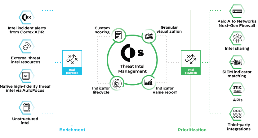 확장 가능한 Cortex XSOAR 플랫폼의 일부로서 Threat Intel Management는 위협 인텔리전스 집계, 점수 매기기 및 공유를 플레이북 기반 자동화와 통합하여 새로운 접근 방식을 정의한다. 여기서 보안 리더에게 우선 순위가 높은 위협으로 즉각적인 명확성을 부여하여 전체 엔터프라이즈에서 올바른 방식으로 올바른 대응을 유도한다.
