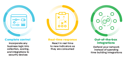 ① 위협 인텔리전스에 대한 완벽한 제어는 지표를 제공하여, 환경 및 비즈니스 요구사항을 기반으로 자체 논리와 평판을 구축한다.