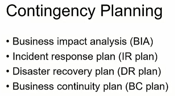 위험 관리 프로세스의 일부는 구현된 제어 장치가 정보 자산을 보호하지 못할 경우 정보 자산의 손실 또는 손상을 최소화할 수 있는 백업 프로세스와 제어 장치가 마련되어 있다는 보장이다. 성공적인 공격을 통해 정보 자산이 손상되는 것을 완화하기 위한 가장 일반적인 접근 방식은 컨틴전시 플랜(Contentity Planning)이다.