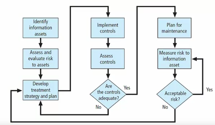 위험을 처리하는 것은 위험 처리 전략이 무엇인지 그리고 그것을 어떻게 공식화할 것인지에 대한 이해에서 시작된다. 선택된 전략은 위험 평가의 이전 단계에서 확인된 모든 자산과 취약성을 소환하기 위해 추가적이거나 새로운 통제를 적용하는 것을 포함할 수 있다. 조직의 일반 관리 팀이 정보 보안 위협으로 인한 위험이 임계값을 초과한다고 결정하면 해당 위험을 치료하기 위한 프로세스를 시작한다. 위험 관리 프로세스가 위험 치료 프로세스를 시작할 수 있는 권한이 부여되면 해당 자산에 대한 위험을 치료하기 위한 4가지 기본 전략 중 하나를 선택할 수 있다.