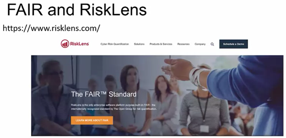 여기서는 여러 가지 대안적인 위험 관리 방법론을 살펴볼 예정인데, 그 중 첫 번째는 정보 위험 요인 분석인 FAIR다. 이 접근법은 잭 존스 보안 컨설턴트가 조직이 정보 리스크를 이해하고 분석하며 측정할 수 있도록 설계했다. 대부분의 방법론과 마찬가지로, FAIR도 여러 변수에 대한 값이 생성되는 형식적이지만 간단한 프레임워크를 따른다. 그런 다음 최종적으로 손실, 사건, 빈도 또는 가능성 및 손실 크기 또는 영향을 계산하고, 이를 결합하여 위험을 계산한다. 2011년 FAIR는 CXO 웨어에서 상업용 컨설팅 벤처의 초석이 되었고, FAIR는 risk calibratir라는 분석 소프트웨어 제품군을 구축했다. 2014년 FAIR는 오픈 그룹에 의해 리스크 관리를 위한 국제 표준으로 채택되었으며 오픈 페어로 브랜드가 변경되었다. 2015년에는 CXO 웨어는 리스크 렌즈로 브랜드가 변경되었다. 그리고 FAIR 모델은 정보 리스크에 대한 분류법을 제공하도록 설계되었다. 정보 위험 용어에 대한 표준 명명법, 데이터 수집 기준, 위험 요인에 대한 측정 척도를 설정하기 위한 프레임워크로 자리잡은 것이다.