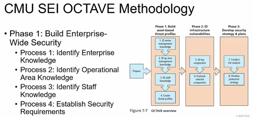 OCTAVE 방법은 카네기 멜론 대학의 소프트웨어 엔지니어링 연구소가 개발한 보안 위험 평가 방법론이다. 이를 통해 조직은 중요 정보 자산의 보호와 형사 통제를 제공하는 비용의 균형을 맞출 수 있다. 이 프로세스를 통해 조직은 알려져 있거나 받아들여지는 우수한 보안 관행에 대해 자체적으로 측정한 다음 ,조직 전반의 보호 전략 및 정보 보안 위험 완화 계획을 수립할 수 있다. OCTAVE 라이브러리는 네 가지 변형을 촉진한다. OCTAVE 지식 체계의 기초를 형성하는 원래의 OCTAVE 방법은 300명 이상의 사용자를 가진 대규모 조직을 위해 설계되었다. OCTAVE-S는 약 100명의 사용자로 구성된 소규모 조직을 위해 개발되었다. OCTAVE-ALLEGRO는 사이버 보안 위험 평가를 위한 간소화된 접근 방식이다. 최근 SEI는 현재 조직을 위한 교육 제공에 중점을 둔 OCTAVE 방법론을 기반으로 기업 위험 관리를 위한 업데이트된 접근 방식을 개발했다. 원래 OCTAVE 방법은 여기에 인용된 문서에 따라 위험 관리에 대한 3단계 8단계 프로세스 접근 방식을 사용한다. 1단계에서는 정보 자산과 그 가치, 해당 자산에 대한 위협 및 보안 요구 사항을 표준 정보 카탈로그와 함께 조직 내 여러 수준의 직원이 알고 있는 지식을 사용하여 식별한다. 예를 들어, 알려진 위협 프로필과 우수한 조직 및 기술 관행을 사용하여 직원이 조직의 자산, 위협 및 현재 보호 전략을 알고 있는지 조사한다. 이 정보는 이후 OCTAVE 1단계의 목표인 기업의 보안 요구 사항을 수립하는 데 사용될 수 있다. OCTAVE 2단계에서는 조직의 정보 자산을 물리적 환경과 네트워크 IT 환경 모두의 정보 인프라 구성 요소에 매핑하여 1단계 동안 캡처된 정보를 기반으로 한다. 이는 우선 순위가 높은 인프라 구성 요소를 식별한다. 이 작업이 완료되면 인프라 취약성 평가가 수행되어 취약성을 식별한다. 1단계와 마찬가지로 표준 정보 카탈로그가 사용된다. 표준 침입 시나리오와 취약성 정보는 인프라 취약성 평가의 기초로 사용된다. 2단계가 끝날 때 조직은 우선 순위가 높은 정보 인프라 구성 요소, 누락된 정책 및 관행과 취약성을 식별한다. OCTAVE의 3단계는 1단계와 2단계 동안 캡처된 정보를 기반으로 한다. 표준 침입 시나리오의 맥락에서 이전 단계에서 확인된 자산, 위협 및 취약성을 분석하여 위험을 식별하는 것이다. 위험 속성이라고도 불리는 위험의 영향과 확률이 추정되고 이후에 위험의 우선 순위를 결정하는 데 사용된다. 위험의 우선 순위를 매기는 목록은 이전 단계의 정보와 함께 사용되어 기업에 대한 보호 전략을 개발하고 보안 위험을 관리하기 위한 포괄적인 계획을 수립한다. 이것이 3단계의 목표다. OCTAVE 방법론은 또한 각각의 규모가 큰 조직에 대한 위험 평가 및 위험 관리 프로세스를 수행하기 위한 펜 및 종이 양식을 제공한다.