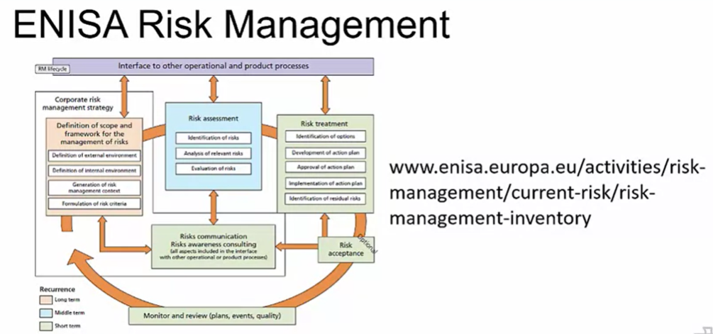 마지막 모델은 ENISA로, 이는 유럽 연합의 기관이다. 그들의 위험 관리 모델은 22개의 다른 속성을 사용하여 12개의 도구의 순위를 매긴다. 또한, 사용자가 위험 관리 방법 또는 도구를 비교할 수 있도록 하는 유틸리티를 웹사이트에서 제공한다. ENISA가 추진하는 주요 위험 관리 프로세스는 알려진 다른 많은 위험 관리 모델과 접근 방식이 있다. 위험을 평가하고 관리하는 데 가장 좋은 접근 방식을 제공하기 위해 그들이 자신의 환경에 적용할 수 있는 방법을 검토하고 평가하고 선택하는 것은 조직에 달려 있다. 결국 가장 중요한 것은 방법론을 선택하고 엄격하게 따르는 것이다.