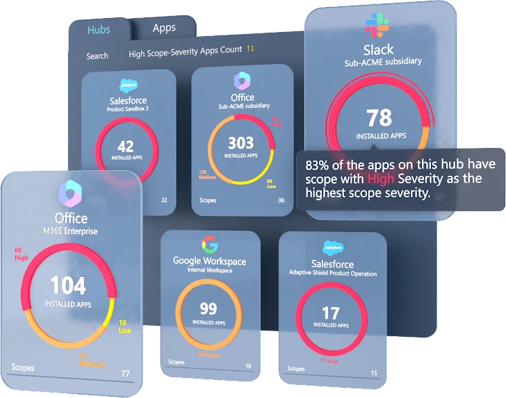 2023년 3월, Adaptive Shield가 발표한 보고서 내용에 따르면, 구글 워크플레이스에서 13,913개의 써드파티 앱이 연결되었다고 한다. 그리고 그중 89%는 고위험 또는 중위험 권한을 요청했다. 이런 위험성이 있는 앱 중 상당수는 한 번 사용하고 잊혀지거나, 소수의 직원들에 의해서만 사용된다. 그렇게 곧바로 휴면으로 돌아서거나 가볍게 사용되는 애플리케이션임에도 상당한 권한이 있으며, 이는 SaaS 애플리케이션을 손상시킬 수 있을 것이다. 조직 내의 많은 직원들은 업무의 편의성을 위해 보안 부서에 따로 문의하지 않고 특정 앱을 사용하는 경향이 짙다. 위험을 줄이기 위해서는 사소한 것이어도 그 내용을 보안 부서와 공유해야 할 것이고, 보안 부서는 그 내용을 토대로 SaaS 위험에 대비해야 할 것이다.