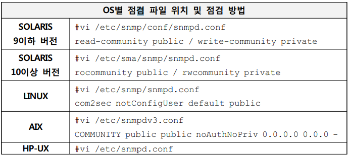 SNMP 서비스 Community String의 복잡성 설정