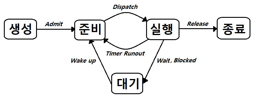 | Wake up | 대기 → 준비 | 대기 중이던 사건의 처리가 끝났을 때 발생한다. |