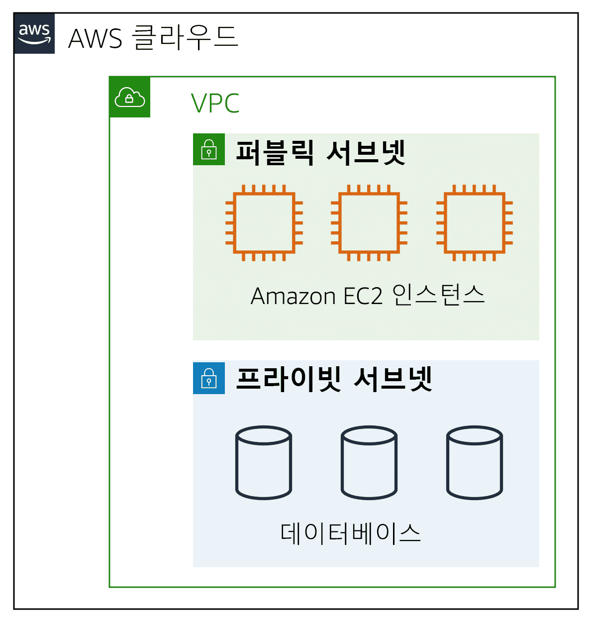 서브넷은 보안 또는 운영 요구 사항에 따라 리소스를 그룹화할 수 있는 VPC 내의 한 섹션이다. 서브넷은 퍼블릭이거나 프라이빗일 수 있다. 퍼블릭 서브넷에는 온라인 상점의 웹 사이트와 같이 누구나 액세스할 수 있어야 하는 리소스가 포함된다. 반면, 프라이빗 서브넷에는 고객의 개인 정보 및 주문 내역이 포함된 데이터베이스와 같이 프라이빗 네트워크를 통해서만 액세스할 수 있는 리소스가 포함된다. VPC 내에서 서브넷은 서로 통신할 수 있다. 예를 들어 퍼블릭 서브넷에 있는 Amazon EC2 인스턴스가 프라이빗 서브넷에 있는 데이터베이스와 통신하는 애플리케이션이 있을 수 있다.