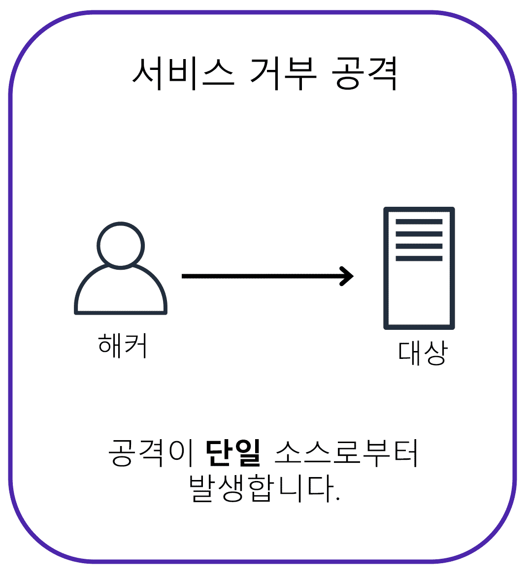 서비스 거부(DoS) 공격은 사용자들이 웹 사이트 또는 애플리케이션을 이용할 수 없게 만들려는 의도적인 시도다. 예를 들어 공격자는 표적으로 삼은 웹 사이트 또는 애플리케이션이 과부하가 걸려 더 이상 응답할 수 없을 때까지 웹 사이트 또는 애플리케이션을 과도한 네트워크 트래픽으로 플러드할 수 있다. 웹 사이트 또는 애플리케이션을 사용할 수 없게 되면 합법적인 요청을 시도하는 사용자에게 서비스를 거부한다.