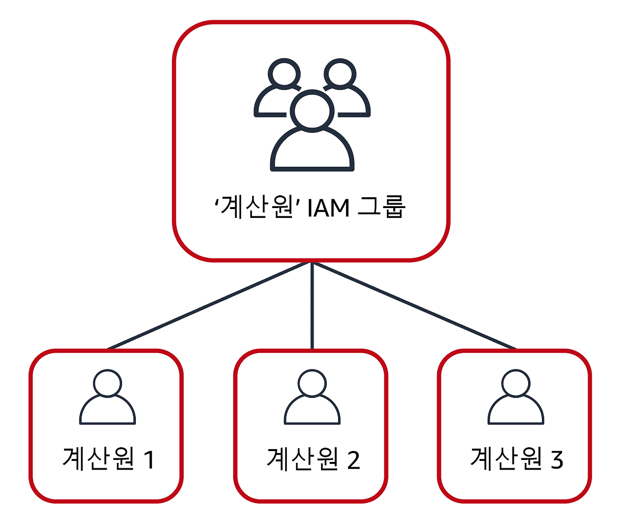 IAM 그룹은 IAM 사용자의 모음이다. 그룹에 IAM 정책을 할당하면 해당 그룹의 모든 사용자에게 정책에 지정된 권한이 부여된다.