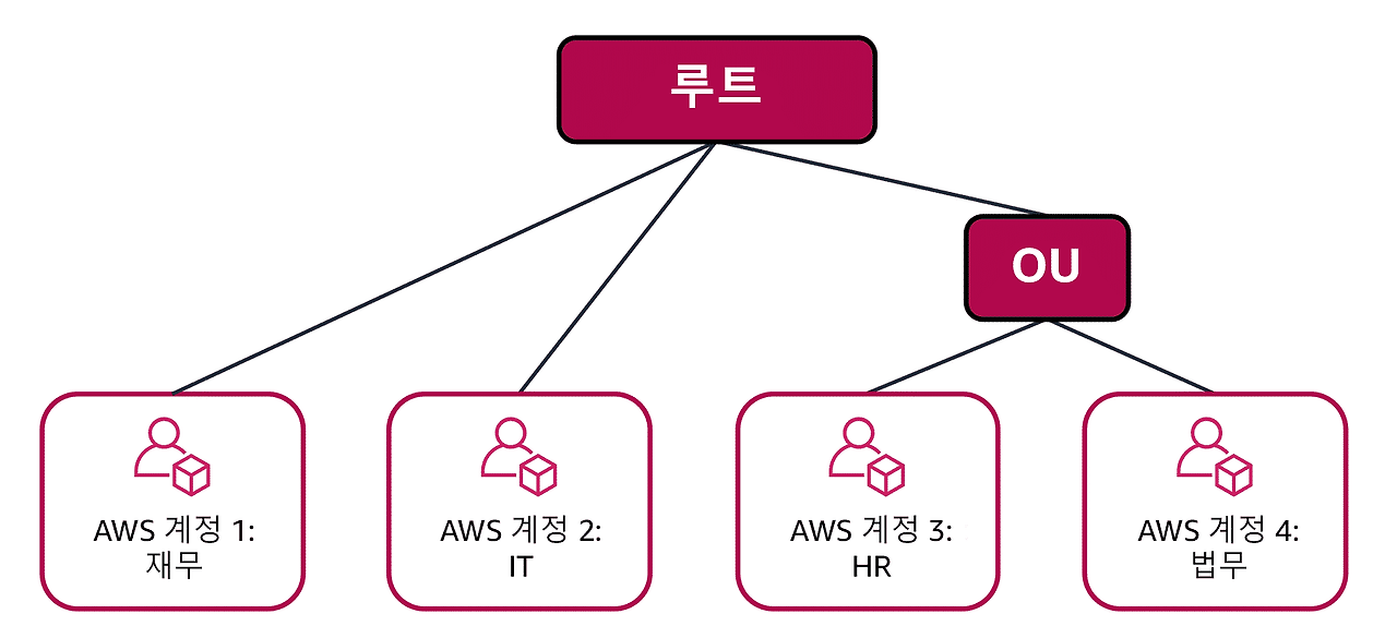 AWS Organizations에서는 계정을 조직 단위(OU)로 그룹화하여 비슷한 비즈니스 또는 보안 요구 사항이 있는 계정을 손쉽게 관리할 수 있다. OU에 정책을 적용하면 OU의 모든 계정이 정책에 지정된 권한을 자동으로 상속한다.