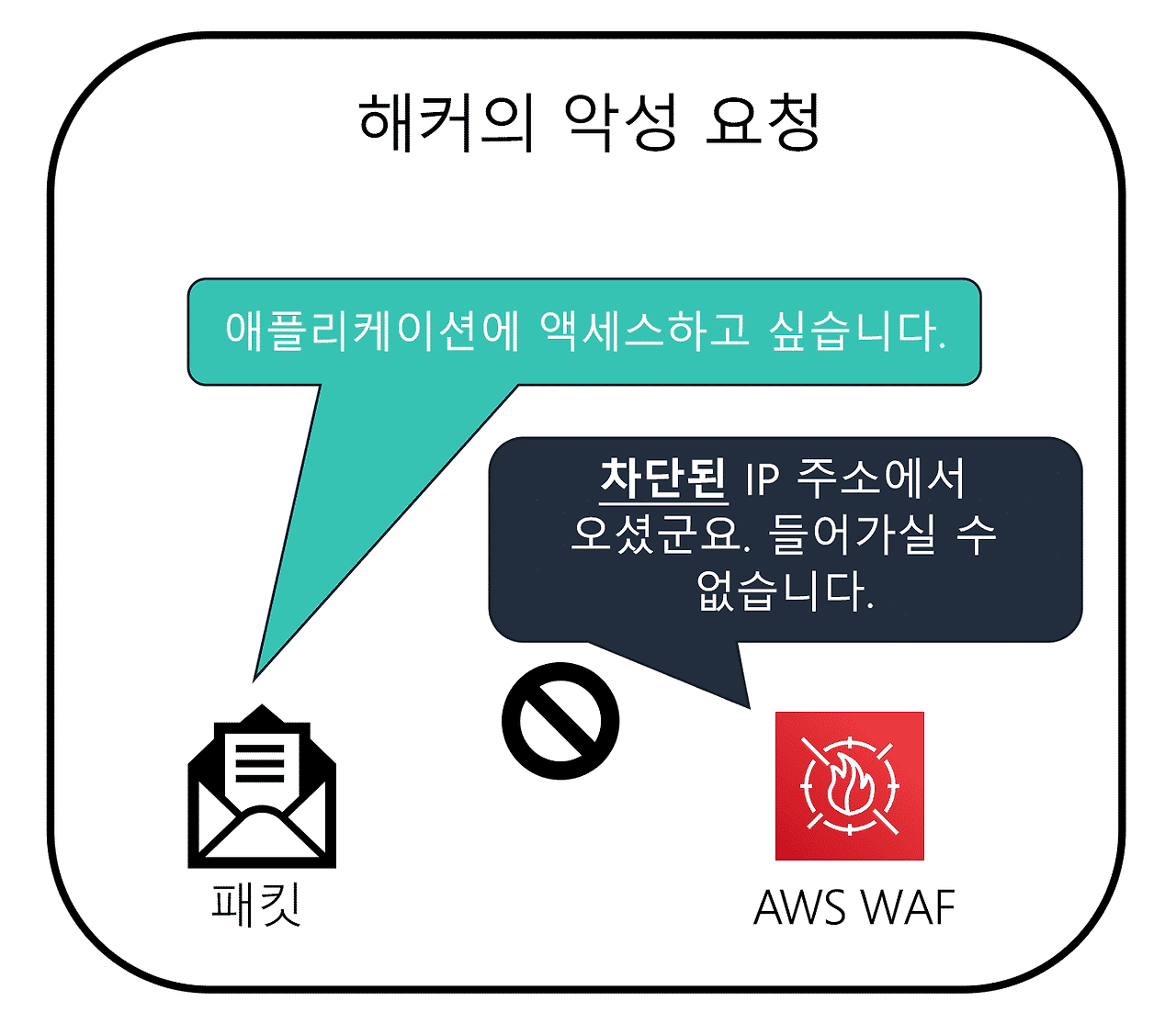 그러나 요청이 웹 ACL에서 지정한 차단 IP 주소 중 하나에서 나왔으면 AWS WAF가 액세스를 거부한다.