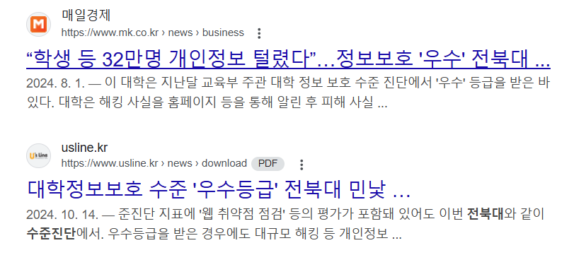 나는 이번 사업에서 교육부 수준진단을 한다는 것을 알고 나서, 사업 투입 전에 검색을 해서 미리 사전 정보를 파악한 적이 있다. 그리고 정보보호 수준진단에 대한 부정적 기사를 수차례 접할 수 있었다. 각종 교육기관이 정보보호 수준진단에서 우수 또는 매우 우수를 받았음에도 사고를 발생했다면서, 이게 과연 신뢰도가 있는지를 꼬집는 것이 골자였다.