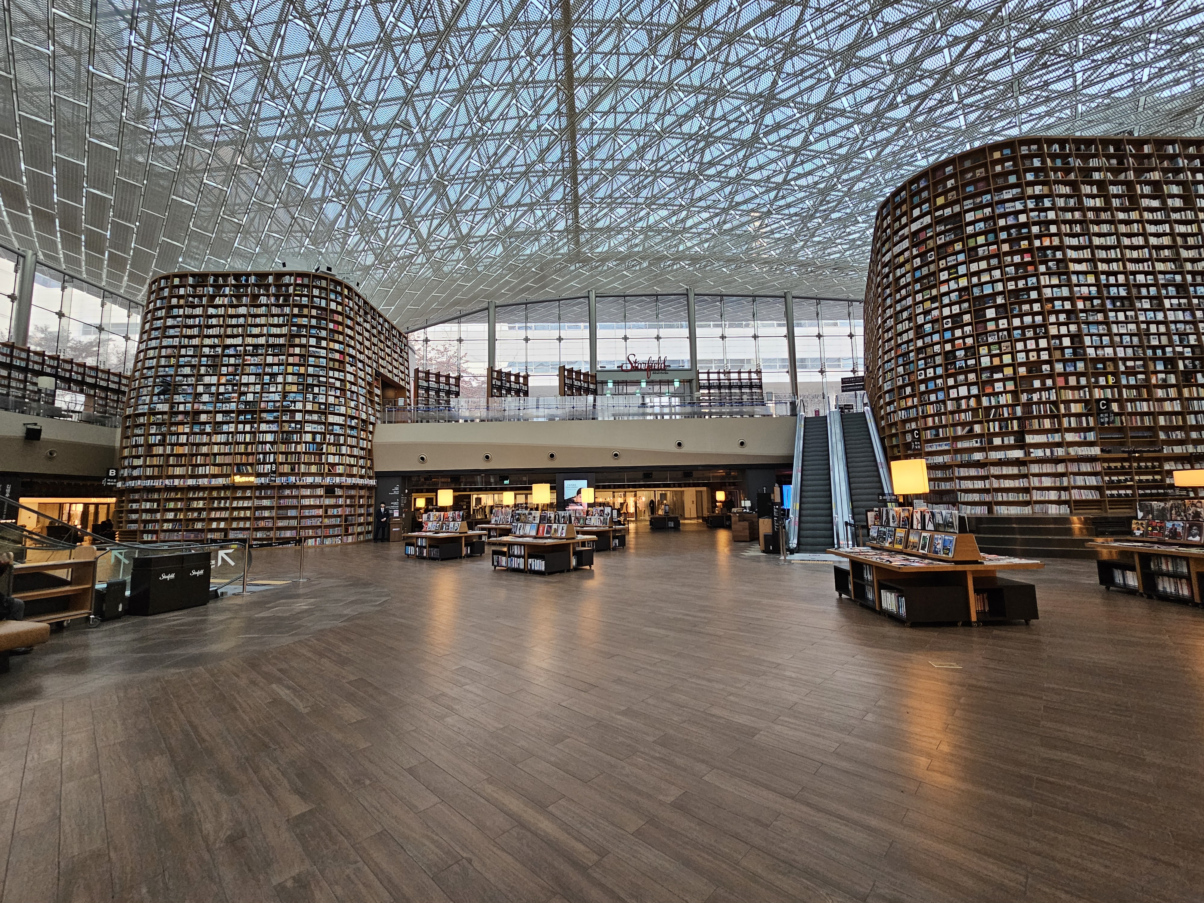 언제부턴가 코엑스에 방문하게 되면 별마당도서관을 거쳐가는 건 당연스레 여겨진다. 무언가 특별한 시기를 앞두지 않아서인지, 오늘은 중앙에 상징물이 없는 모습이다.