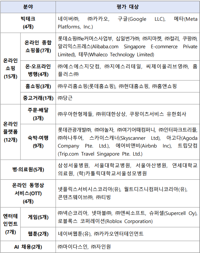 개인정보보호위원회는 국민생활과 밀접한 7개 분야에 대한 24년 개인정보 처리방침 평가 결과를 공개했다. 2024년 평가제 적용대상은 총 7개 분야 49개 기업으로 진행됐다.