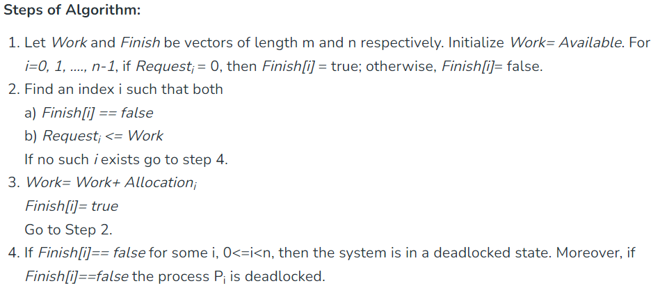 교착상태 발생 여부를 파악하기 위하여 시스템의 상태를 검사하기 위한 알고리즘이다. 이 알고리즘은 프로세스와 리소스의 상태를 확인하여 교착 상태가 발생했는지 확인한다.