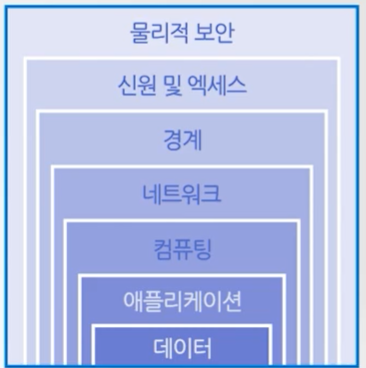 심층방어를 이해하기에 앞서, 각 계층에 대한 이해가 필요하다. 클라우드 서비스 또는 호스팅 공급자가 소유하는 물리적 보안 계층, 인프라와 변경 제어에 대한 엑세스를 제어하는 신원 및 엑세스 계층, DDoS 보호 기능을 사용하여 최종 사용자에게 서비스 거부가 발생하기 전에 대규모 공격을 필터링하는 경계 계층, 구분 및 엑세스 제어를 통해 리소스 간의 통신을 제한하는 네트워크 계층, 가상 머신에 대한 엑세스를 보호하는 컴퓨팅 계층, 애플리케이션을 보호하고 보안 취약점을 제거하는 애플리케이션 계층, 보호해야 하는 비즈니스 및 고객 데이터에 대한 엑세스를 제어하는 데이터 계층이 있다.