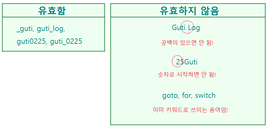 1. 식별자(Identifiers)의 개념 C++ 프로그래밍 언어에서 식별자는 변수, 함수, 클래스, 구조 또는 프로그램 내의 다른 엔티티에 할당된 고유한 이름을 말한다. 예시로, int num = 11; 에서 num이 식별자인 것이다. int는 식별자가 아닌, 데이터 타입이다. 2. C++에서 식별자에 대한 규칙 다음 규칙들을 충족한다면, 우리가 만드는 그 어떠한 것도 식별자가 될 수 있다. ① 식별자는 문자(A-Z 또는 a-z), 숫자(0-9) 및 밑줄(_)로 구성될 수 있다. 특수 문자와 공백은 사용할 수 없다. ② 식별자는 문자 또는 밑줄로만 시작할 수 있다. ③ C++에는 해당 언어에 미리 정의된 의미가 있으므로 식별자로 사용할 수 없는 키워드가 존재한다. 예를 들어, 위에서 쓰인 int는 이미..